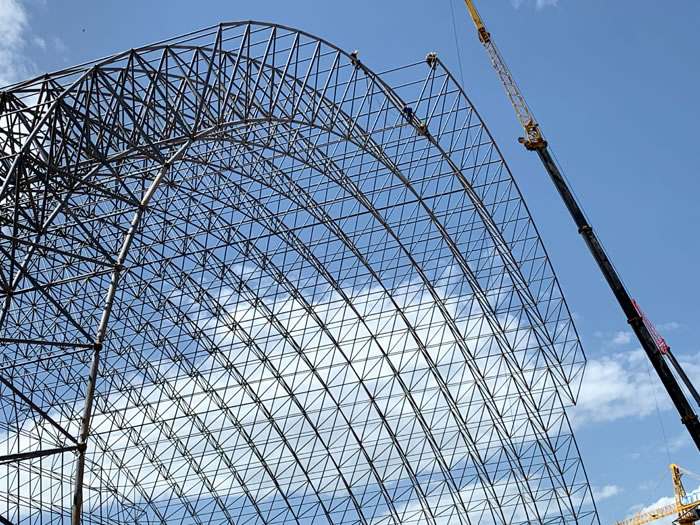 (2)网架加工前应对现场尺寸进行复测,确认无误后方可进行加工、安装;网架制作、运输、安装应遵守《空间网格结构技术规程》JGJ7-2010、《钢网架郴州螺栓球节点》JG/T 10-2009、《钢网架郴州螺栓球节点用高强度螺栓》 GB/T 16939-2016、《郴州钢结构郴州工程郴州施工规范》 GB50755-2012、《郴州钢结构郴州工程郴州施工质量验收标准》 GB50205-2020。